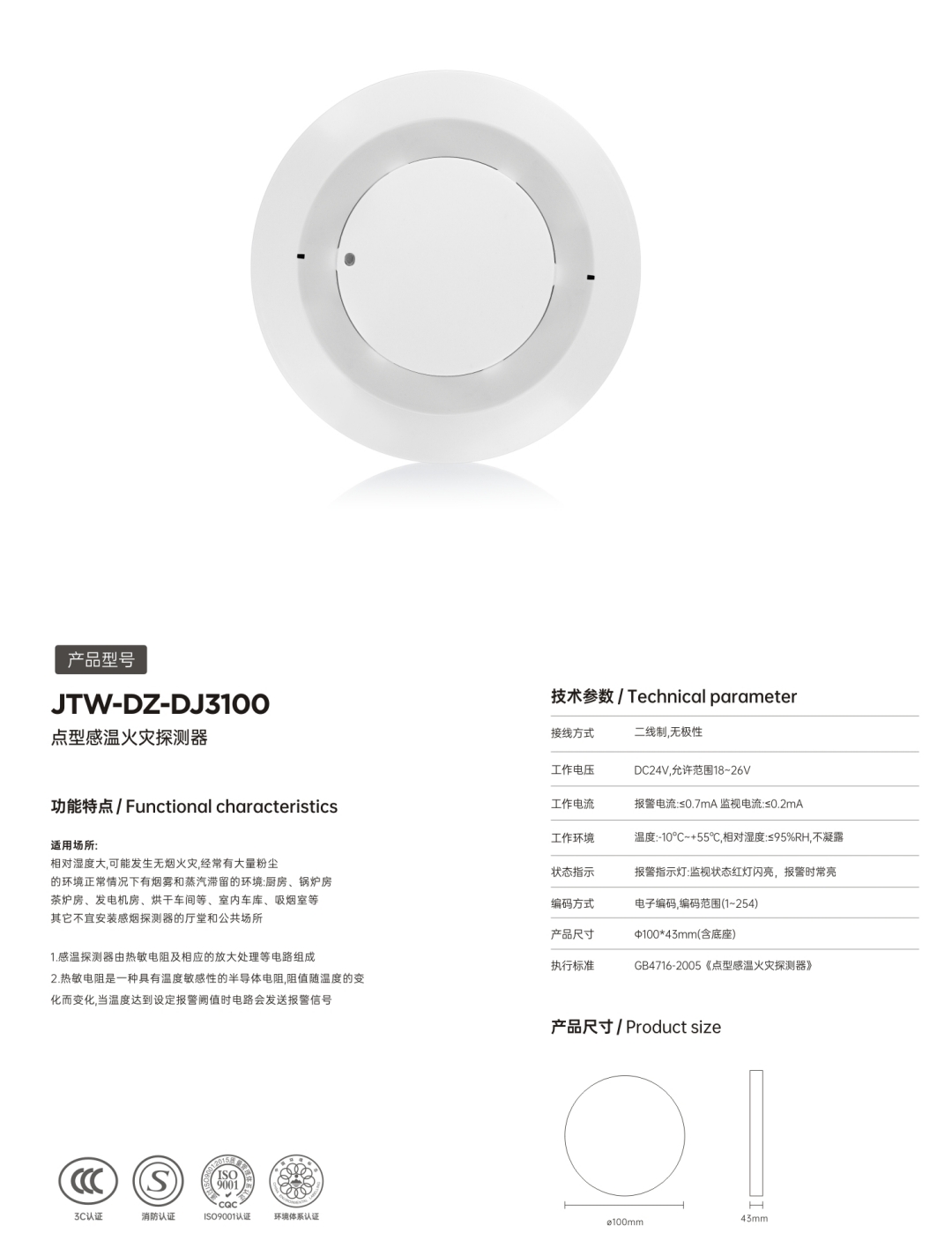 JTW-DZ-DJ3100点型感温火灾探测器