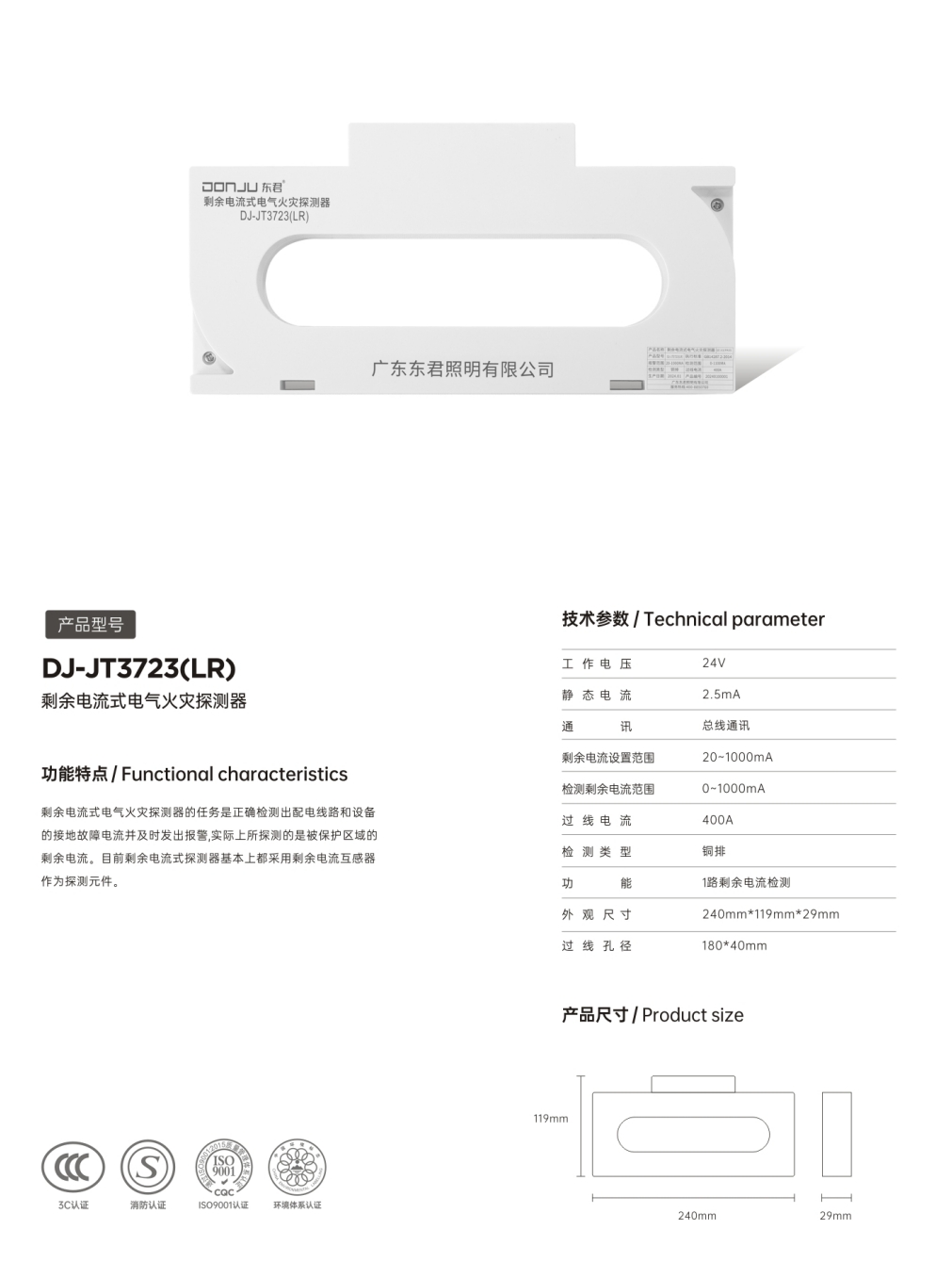 DJ-JT3723(LR)剩余电流式电气火灾探测器